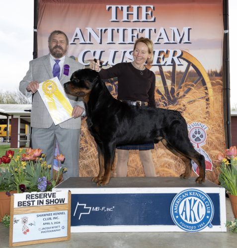 Sire: BIS/BISS/BOSS, Multi V-1/AOM, ARV Sieger, Am/Can Ch. Nighthawk’s Quite The Man v Wyndhurst, BH, RE, BBT, TT, CGC, HIC
